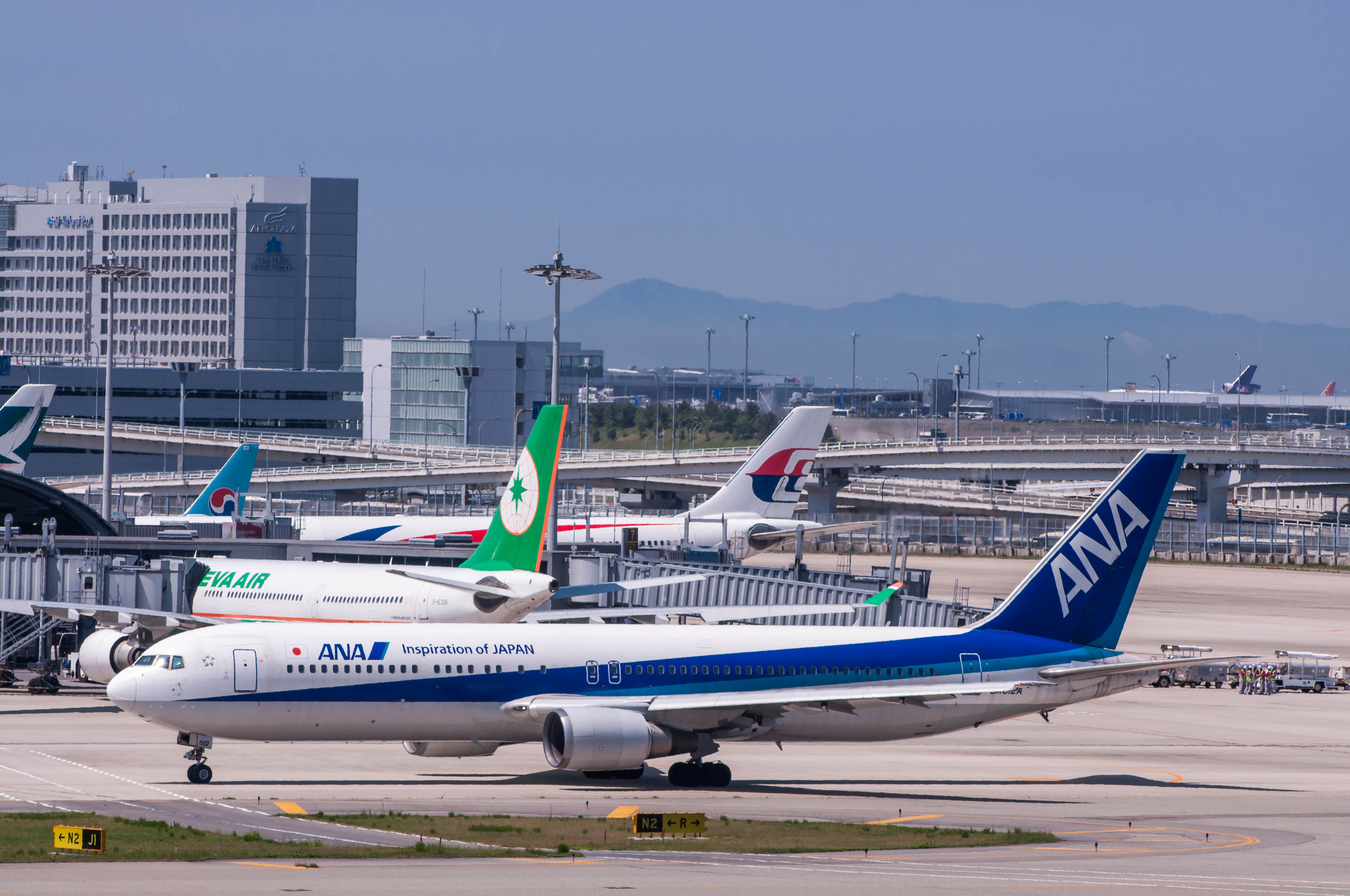 青島行ANA B767-300 B6はあんまり好きではないですね、どちらかというと。