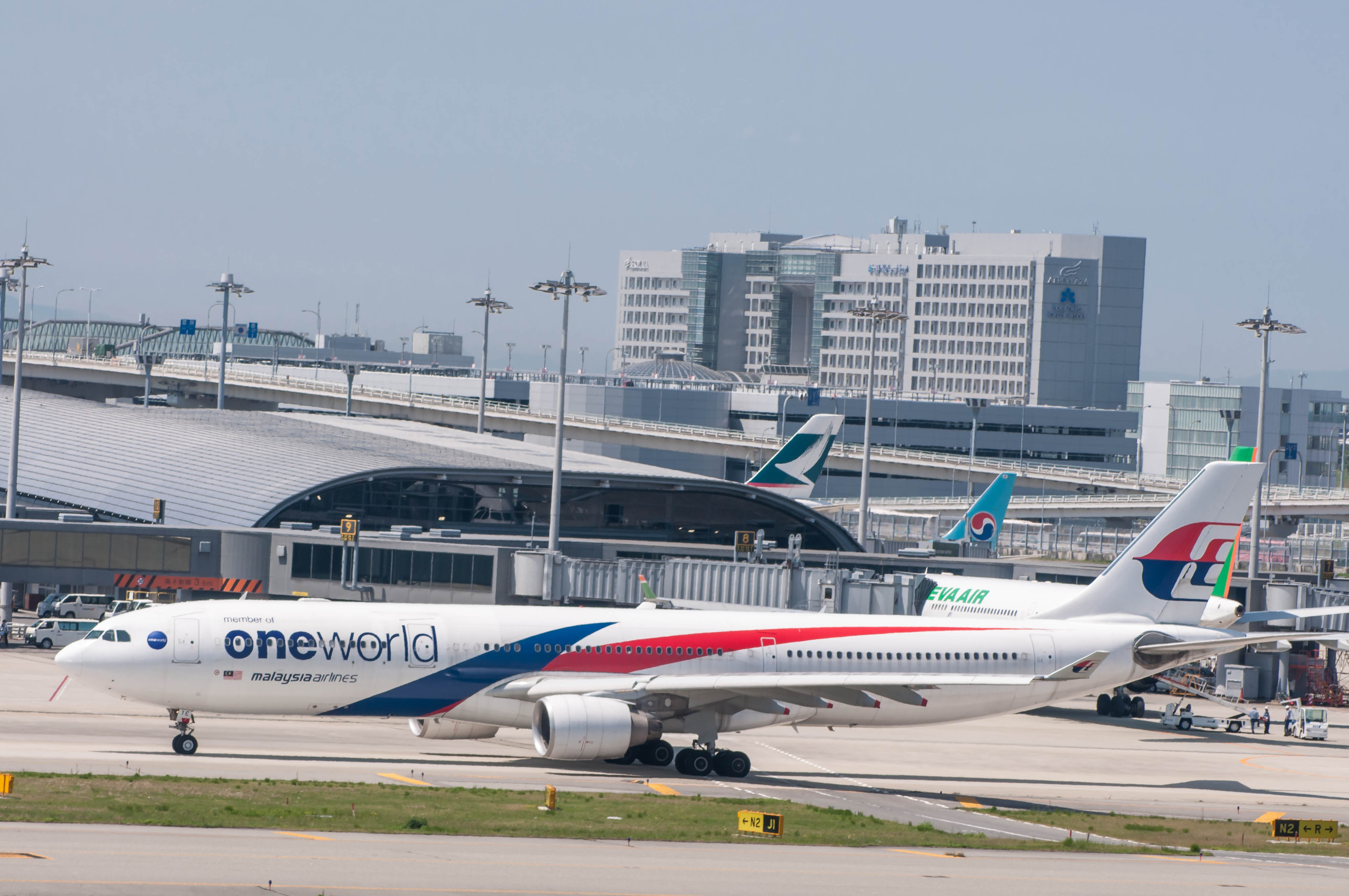 この日来て気づいた、Malaysia Air A330のOne world塗装。Malysiaカラーのある特別塗装で面白い。