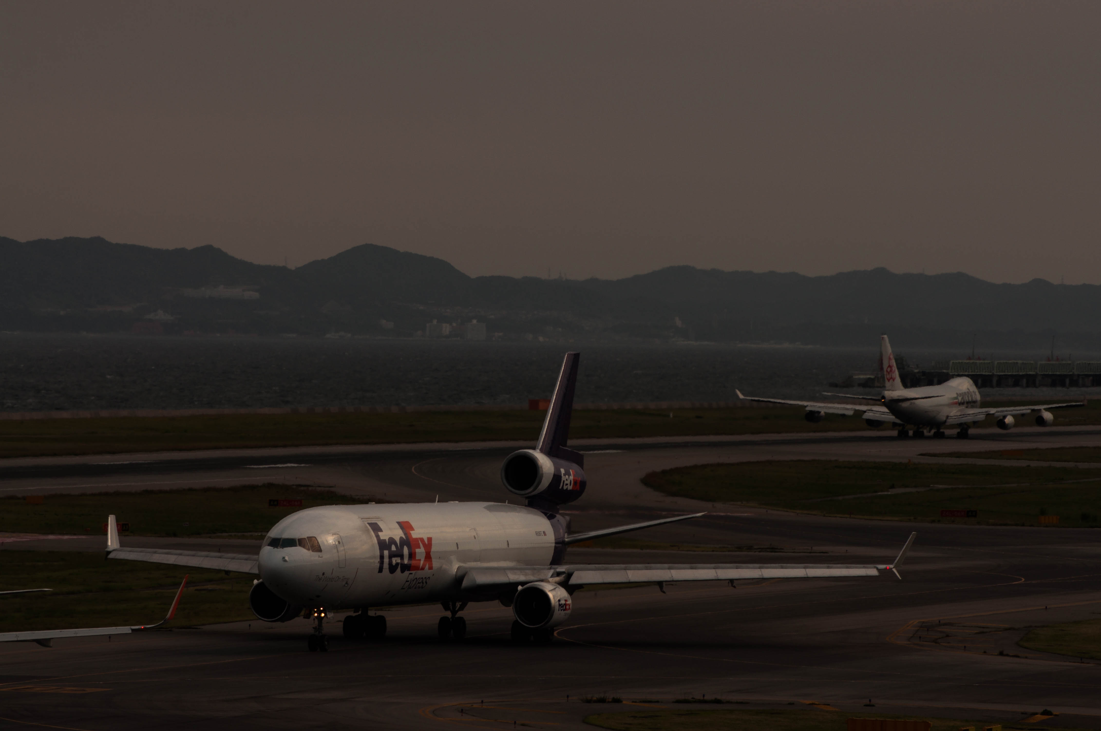 もう夕暮れです。淡路島を旋回してくるヤツがいます。