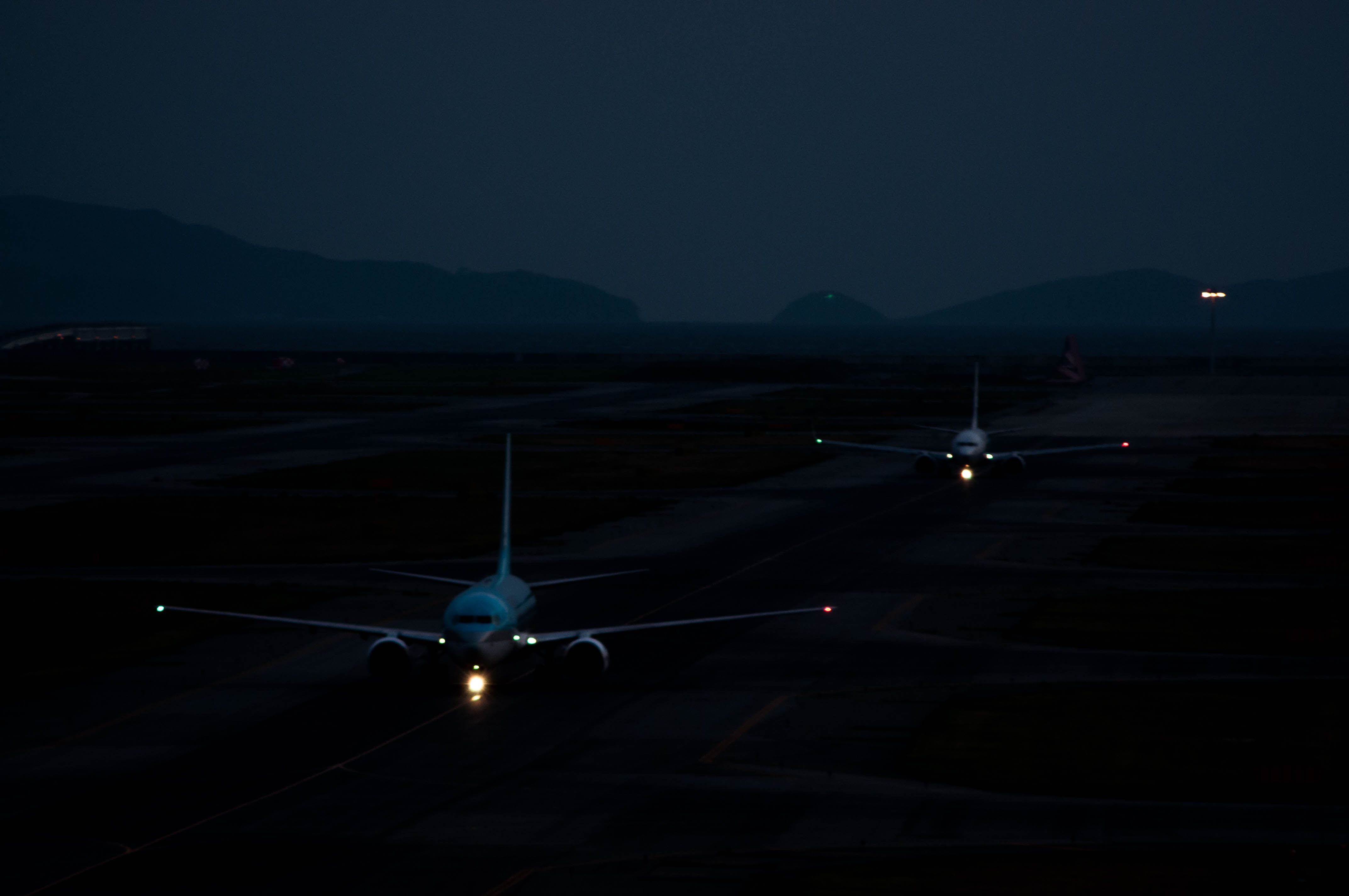 飛行機のライトにフォーカスを合わせて。