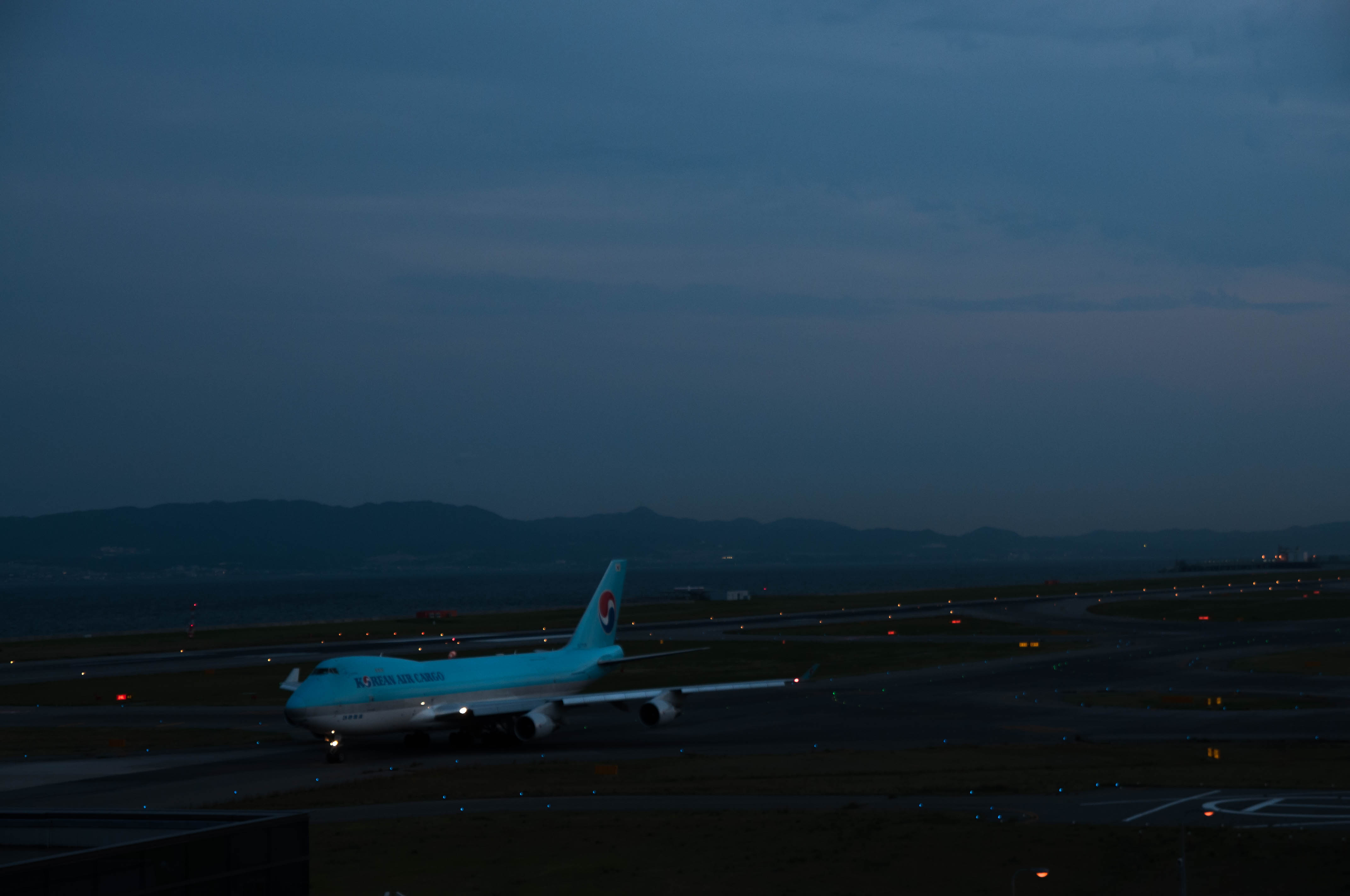 大韓の貨物、B747F。この短時間で何を下ろしていったのか逆に気になる。