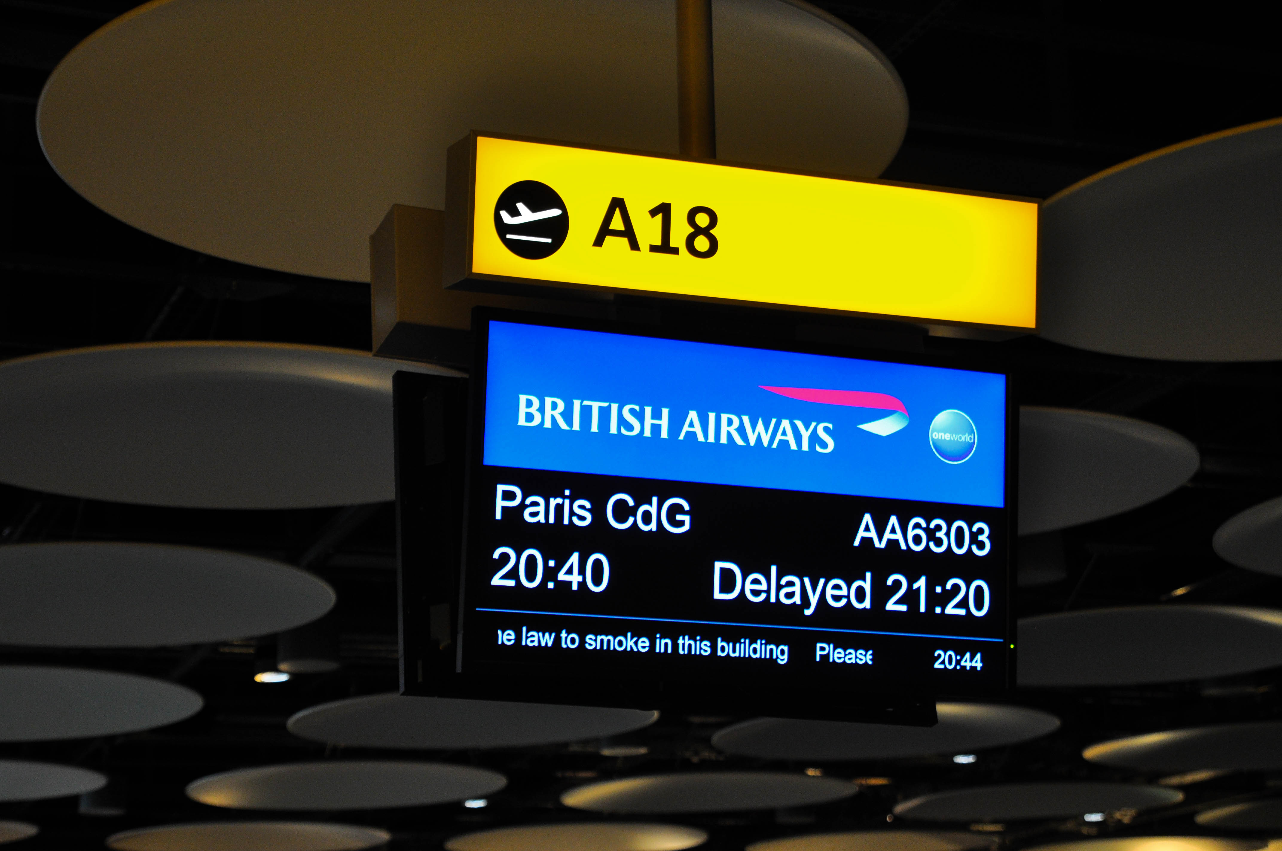 今日はOneWorldの便なのでラウンジが使えないからこうなったわけですが、それはそれでいい思い出になったからよかったかなーなんて言いながらDeparturesの画面を見てもいつまでたってもパリ行きの便が出ない。