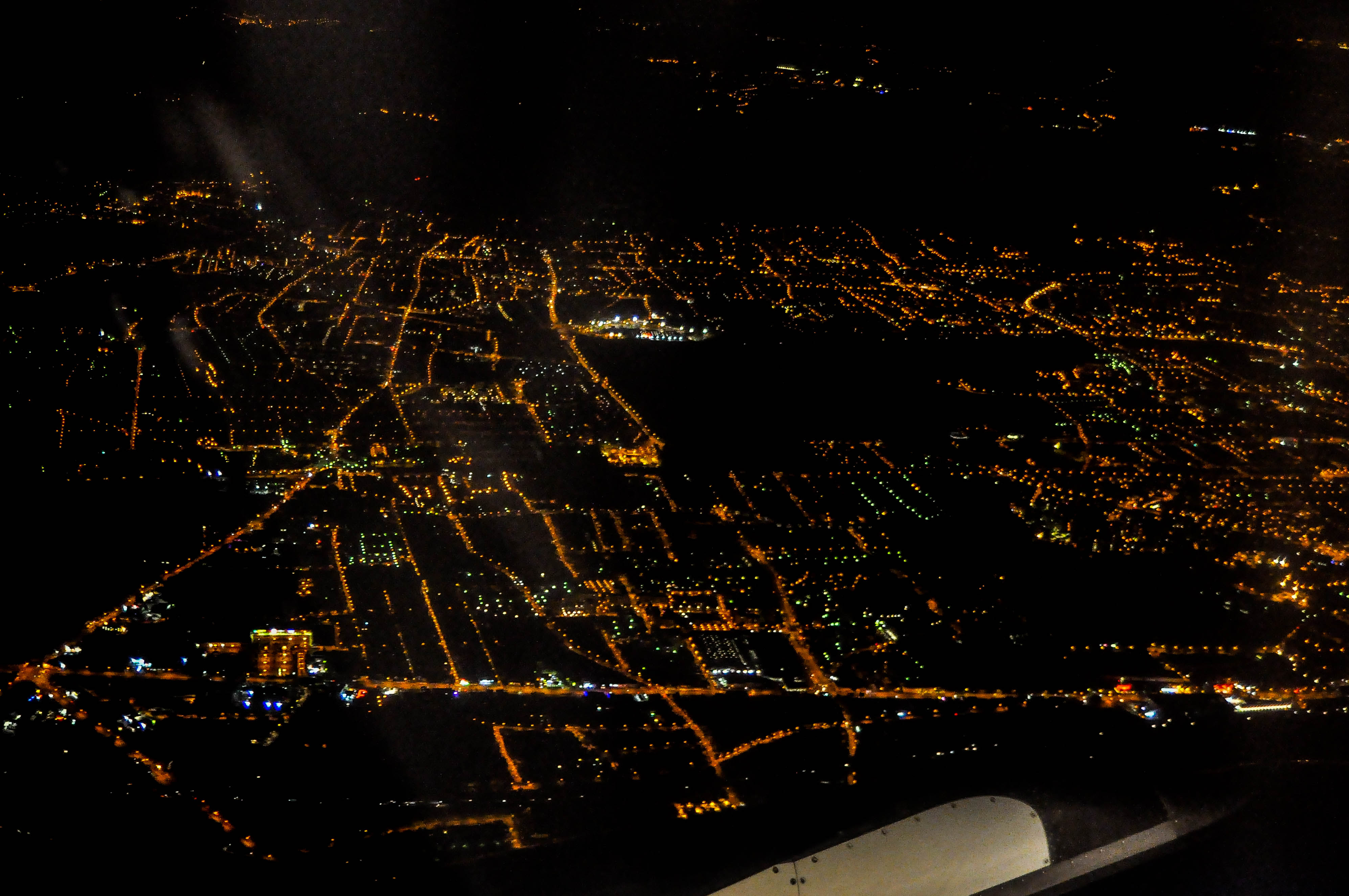 ベルトサインがついてしばらくするとパリ市内上空を通過。こちらは左側座席の画像ですが、右側座席には灯台のようなエッフェル塔と凱旋門が見えていました。