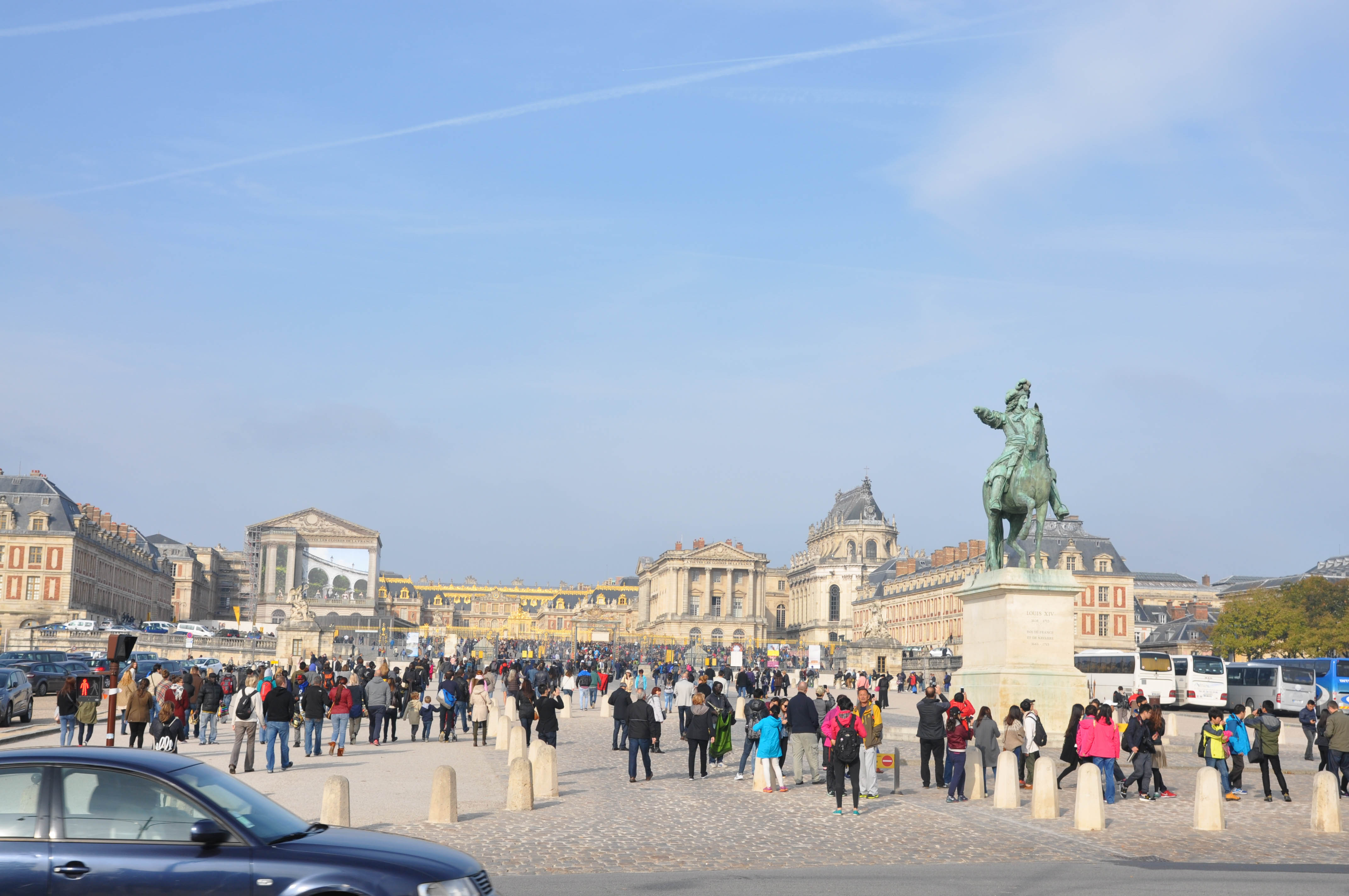 見えてきました、ベルサイユ宮殿!見た目はバッキンガムよりもいっそう華やかです!